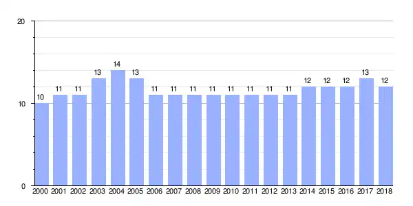 | Gráfica de evolución demográfica de Fraga entre 2000 y 2018 |