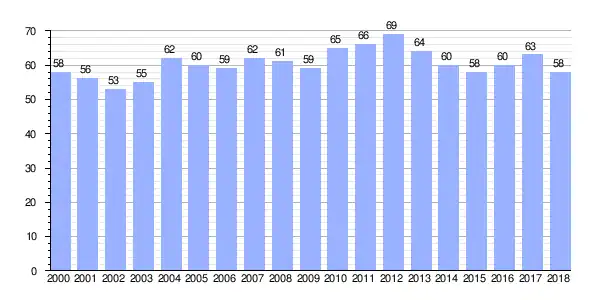 | Gráfica de evolución demográfica de Fraga Alta entre 2000 y 2018 |