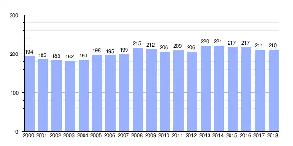 | Gráfica de evolución demográfica de Framil entre 2000 y 2018 |