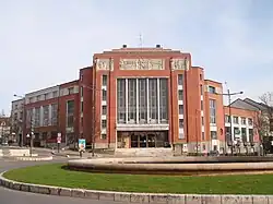 Vista del edificio de la Casa de Cultura de Bourges, con esculturas de Popineau | ||