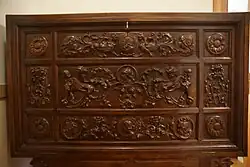 Bargueño en madera de nogal.Tercer periodo: en 1931 Francisco Guerrero se relaciona con otros artistas locales, como es el caso de Francisco Escalona, con quien en 1934 constituye la Sociedad G.E.A.S (acrónimo formado con las iniciales del primer apellido de sus socios fundadores), de la que también forman parte el pintor Fernando Alcantud y Herminio Sáez. Es en esta época cuando las Artes Decorativas se encuentran en una situación de crisis en la ciudad por la falta de encargos. Esta circunstancia se hace constar en una carta pública dirigida al Gobernador, al Alcalde y al Presidente de la Diputación, suscrita por varias personas del ramo de la decoración y la pintura, entre ellos Francisco Guerrero, en la que piden que se lleven a cabo las actuaciones necesarias para que los propietarios les ofrezcan trabajo. Para ello proponen crear una comisión, formada por ellos mismos, que se encargaría de recorrer la ciudad para hacer un inventario de aquellos edificios con necesidad de ser restaurados. De esta época es la decoración de la antigua Cámara de Comercio de Albacete, trabajo que no se conserva pero sí el edificio, en el n.º 4 de la Plaza del Altozano de Albacete.