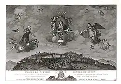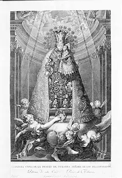 Cronológicamente, la última estampa que se le conoce: la imagen de Nuestra Señora de Belén, va fechada en Porta Coeli en 1827. Abierta por dibujo del cordobés Diego Monroy y Aguilera, fue encargo del infante Carlos María Isidro, hermano de Fernando VII, y su esposa con motivo de una visita al Desierto de Nuestra Señora de Belén en la sierra cordobesa, como consta por la leyenda que figura al pie de la estampa, en la que se explica el contenido de la misma: «Imagen de la Santísima y milagrosa Patrona de la Congregación de Hermitaños Anacoretos de la Sierra de Cordova / con la perspectiva meridional del Santo monte donde estos habitan / grabada a devoción y espensas de los Serenísimos Señores Infantes de España / Dn Carlos María Isidro de Borbón, y Dª María Francisca de Asís de Braganza y Borbón».[17]