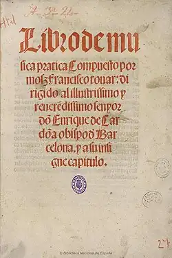 - ↑ Bermudo, Juan (1549). Comiença el libro primero de la declaración de instrumentos. Osuna: Juan de León.