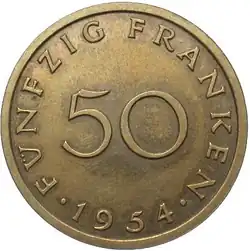 | 50 Franken | 1954 | Bronce de aluminio | Circular | |