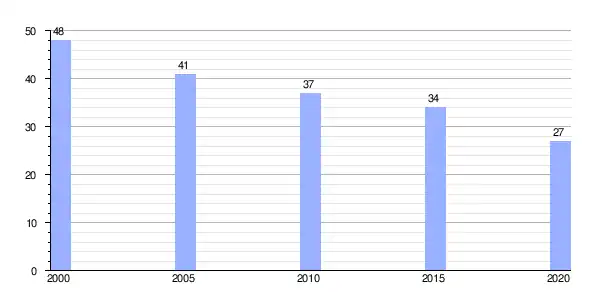 | Gráfica de evolución demográfica de Francos (parroquia) entre 2000 y 2020 |
