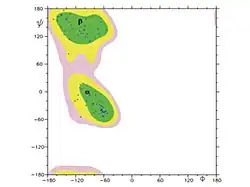 Ángulos diédricos en la frataxina (gráfico de Ramachandran)