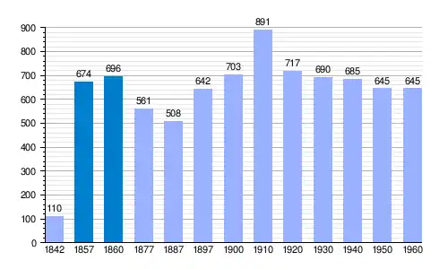 | Gráfica de evolución demográfica de Freixanet[4] entre 1842 y 1960 |