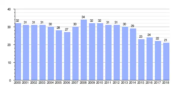 Gráfica de evolución demográfica de Freixido entre 2000 y 2018
