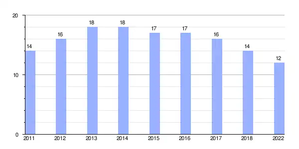 | Gráfica de evolución demográfica de Frenza entre 2011 y 2022 |