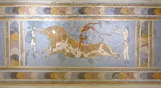 El Fresco de los boxeadores de Akrotiri, descubierto en 1967, es un fresco que muestra a dos niños que llevan guantes de boxeo y cinturones, realizado durante la Edad del Bronce, hacia 1700-1650 a. C. Entre 1639 y 1550 a. C., un desastroso terremoto, seguido por una fuerte erupción volcánica, cubrió la ciudad de Acrotiri con una gruesa capa de piedra pómez y ceniza, lo que resultó en la notable conservación de los frescos que adornaban múltiples edificios, incluyendo el Fresco de los boxeadores. Este fresco en particular fue descubierto en la habitación B1 del edificio Beta junto con el Fresco de los antílopes.[1] Las cabezas rasuradas dejando algunos mechones largos indican la juventud de los chiquillos, mientras su tono de piel rojizo indica su género.[2] El chico de la derecha está completamente desnudo excepto un cinturón, mientras que el chico a la izquierda porta joyas: pendientes de oro, collar, brazaletes y una tobillera todos de cuentas azules; un probable marcador de un estatus superior. Las figuras tienen una altura ligeramente superior al natural, con 1,75 m. Para crear tales frescos vibrantes, se aplicaba un suave enlucido a las paredes sobre el que después se pintaba. Es inseguro si se trata de una competición o simplemente entrenamiento.
