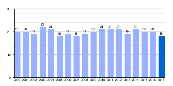 | Gráfica de evolución demográfica de Fresneda[1] entre 2000 y 2017 |