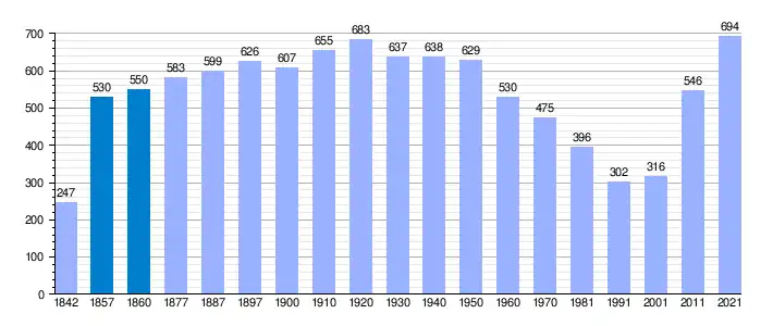 | Gráfica de evolución demográfica de Fresnillo de las Dueñas[6] entre 1842 y 2021 |