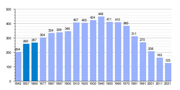 | Gráfica de evolución demográfica de Fresno de la Polvorosa[9] entre 1842 y 2021 |