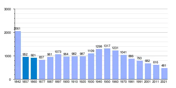 | Gráfica de evolución demográfica de Fresno de la Vega[6] entre 1842 y 2021 |