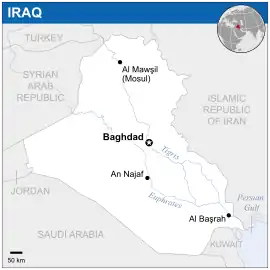 ![]() Localización de Arabia Saudita (naranja) e Irak (verde).