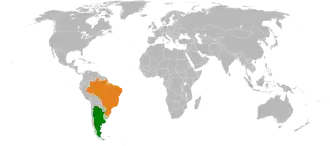 ![]() Localización de Brasil (naranja) y Argentina (verde).