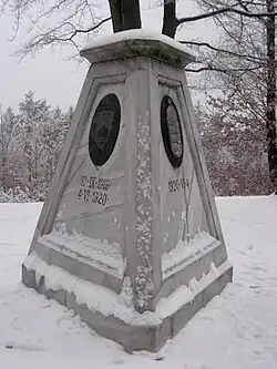 A poca distancia del trifinio, se conmemora la intersección de las fronteras con un monumento. Con forma de forma tetraedro truncado, a cada lado lleva el escudo de armas de los tres países. La parte austriaca también lleva la enmienda «10•IX•1919», por el 10 de septiembre de 1919, fecha de firma del tratado de Saint-Germain-en-Laye. La cara húngara porta «4•VI•1920», por el 4 de junio de 1920, firma del tratado de Trianón. La cara eslovena muestra las dos fechas.