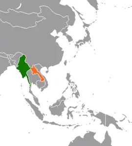 ![]() Localización de Laos (naranja) y Birmania (verde).