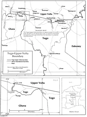 - Burkina Faso (Upper Volta) – Togo Boundary (pdf). International Boundary Study, n. 128 (en inglés). The Geographer - USA State Department. 29 de septiembre de 1972. p. 7.