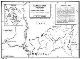 - ↑ Geographer, Office of Research in Economics and Science, Bureau of Intelligence and Research (12 de junio de 1964). US Department of State, ed. «International Boundary Study n° 32 Cambodia – Laos Boundary» (en inglés). The Florida State University. Archivado desde el original el 16 de septiembre de 2006. Consultado el 14 de junio de 2010.