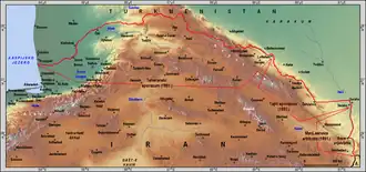 ![]() Localización de Turkmenistán (naranja) y Irán (verde).