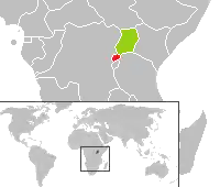 ![]() Localización de Ruanda (rojo) y Uganda (verde).