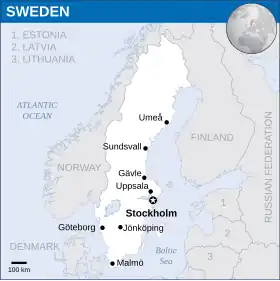 Suecia tiene fronteras terrestres y marítimas con:[2]