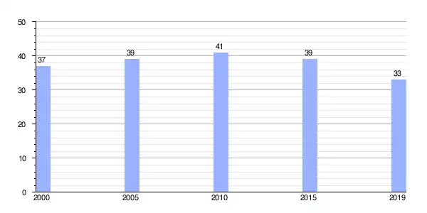 | Gráfica de evolución demográfica de Froxán entre 2000 y 2019 |