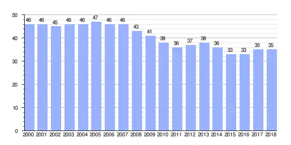 | Gráfica de evolución demográfica de Fruzo entre 2000 y 2018 |