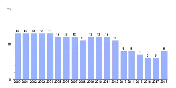 | Gráfica de evolución demográfica de Fucarelos entre 2000 y 2018 |
