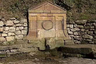 La primera reseña sobre la fuente se remonta a la época de Ordoño II, que fue rey de León desde el año 914 hasta el 924, que la donó a la catedral de Oviedo. La fuente pública, probablemente se reconstruyó en el siglo xviii y está realizada en sillar de arenisca bien tallados en forma paralelepipédica. Tiene planta rectangular y alzado neoclásico.