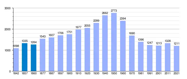 | Gráfica de evolución demográfica de Fuente de Pedro Naharro[2] entre 1842 y 2021 |