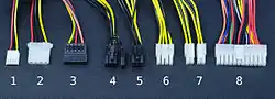 Una fuente de alimentación de un ordenador moderno es una fuente de alimentación conmutada que convierte la alimentación de CA de la red eléctrica en varios voltajes de CC. Los suministros de modo conmutado reemplazaron a los suministros lineales debido a mejoras en el costo, el peso, la eficiencia y el tamaño. La diversa colección de voltajes de salida también tiene requisitos de consumo de corriente muy variables.