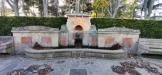 Existió en las inmediaciones otra fuente, la Fuente de Isabel II, construida por los frailes franciscanos en el año 1836[1] durante el reinado de la monarca. Esta fuente estaba localizada un poco más al sur, frente a la entrada de la iglesia del Convento de San Francisco.