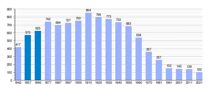 | Gráfica de evolución demográfica de Fuentelespino de Moya[1] entre 1842 y 2021 |
