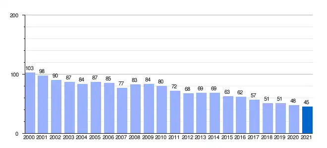 | Gráfica de evolución demográfica de Fuentes de Masueco[2] entre 2000 y 2021 |