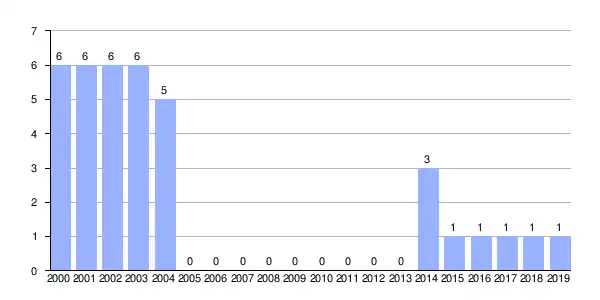 | Gráfica de evolución demográfica de Fuentesanta entre 2000 y 2019 |