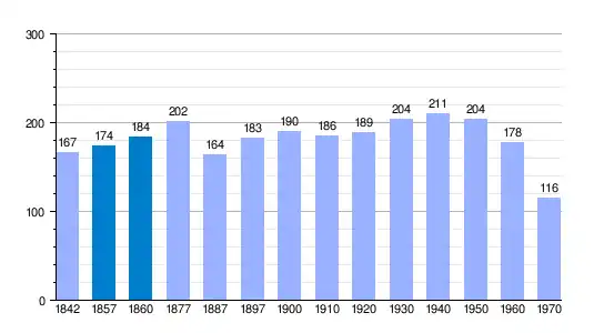 | Gráfica de evolución demográfica de Fuentesclaras del Chillarón[2] entre 1842 y 1970 |