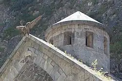 En el frontón del hastial en el lado norte puede leerse una inscripción en latín que hace referencia a los dos emperadores austríacos, bajo cuyo reinado fue erigida la estructura: Francisco I (1834), último emperador del Sacro Imperio Romano Germánico y primero de Austria, y su sucesor, Fernando I (1840).[3]