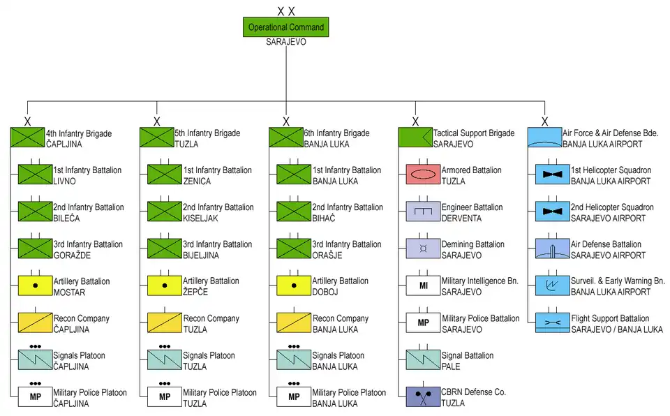 Esta fuerza militar fue constituida en 2005, y está integrada por los antiguos ejércitos bosnio (Ejército de la República Bosnia-Herzegovina; ARBiH), bosniocroata (Consejo Croata de Defensa; HVO), y serbobosnio (Ejército de la República Srpska; VRS). Se encuentran bajo la responsabilidad del Ministerio de Defensa de Bosnia y Herzegovina, fundado en 2004.