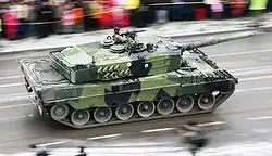 Tanque Leopard 2A4 finlandés durante un desfile en Riihimäki, Finlandia.