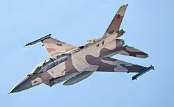 - ↑ At this point, the Royal Moroccan Air Force has been operating three F-16s in the campaign against ISIL. Officials said the Moroccan missions were coordinated with the U.S. Air Force through its air operations command in Qatar.[11]