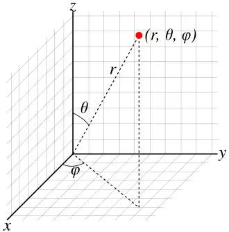 En coordenadas esféricas ( r , θ , φ ), r es la distancia radial desde el origen, θ es el ángulo cenital y φ es el ángulo azimutal. En flujo axisimétrico, con θ= 0 el eje de simetría rotacional, las cantidades que describen el flujo son de nuevo independientes del azimut φ. Las componentes de la velocidad del flujo ur y uθ están relacionadas con la función de corriente de Stokes a través de:[2]