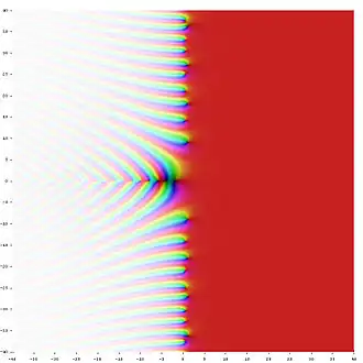 Función eta de Dirichlet en el plano complejo. El color en un punto codifica el valor de . Colores fuertes denotan valores cercanos a cero y el tono codifica el valor del argumento.