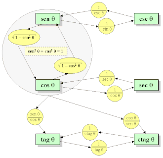 e (inversas) ·Senos ·Cosenos ·Tangentes ·Cotangentes ·Teorema de Pitágoras·Identidades y fórmulas de trigonometría | ||