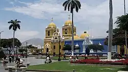 Trujillo fue una de las primeras ciudades fundadas en América por los conquistadores españoles, la ciudad se estableció como parte de la Gobernación de Nueva Castilla y fue fundada entre cuatro asentamientos chimú: Huanchaco, Huamán, Moche y Mampuesto. El 23 de noviembre de 1537, el rey Carlos I de España otorgó a Trujillo el rango de "ciudad" y el escudo de armas que sigue siendo un símbolo de identidad de la ciudad.[1]