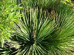 Tiene raíz adventicia, y tallo con rizoma aéreo, tipo arbustivo no modificado de consistencia leñosa. Las hojas lineales lanceoladas, bordes lisos, helicoidales, paralelinervias, de consistencia coriácea, con una espina terminal. La inflorescencia se disponen en racimos; con las flores hermafroditas. Fruto en forma de cápsula.