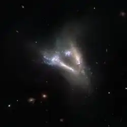 - ↑ «Cosmic “flying V” of merging galaxies». ESA/Hubble Picture of the Week. Consultado el 12 de febrero de 2013.