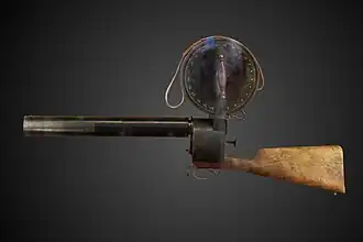 El funcionamiento de un fusil fotográfico es muy similar al de un fusil normal, con empuñadura, cañón y tambor giratorio, excepto que este no trae balas, sino placas fotográficas con las cuales captaba la luz a alta velocidad.[4][5] Funcionaba de este modo: se hacía retroceder el martillo hasta el final, movimiento que permitía mover el tambor, donde había las placas fotográficas. Al tambor también había un obturador, que impedía que la luz entrara cuando no se estaba haciendo la foto, y en el cañón del arma había la lente.[6] Si se quería cambiar el enfoque, se tenía que cambiar la longitud del cañón del arma.[2]