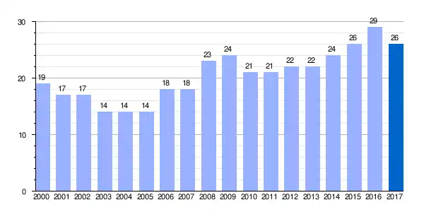 | Gráfica de evolución demográfica de Gámiz[6] entre 2000 y 2017 |